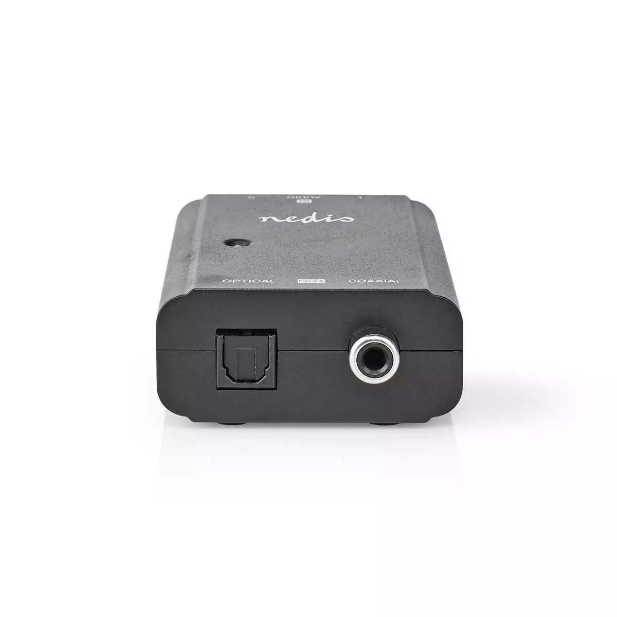 Tämä digitaalinen Nedis-audiomuunnin muuntaa analogisen stereoaudiosignaalin digitaaliseksi Toslink- tai RCA-audiosignaaliksi vastaanottimen tai vahvistimen tuloon.
