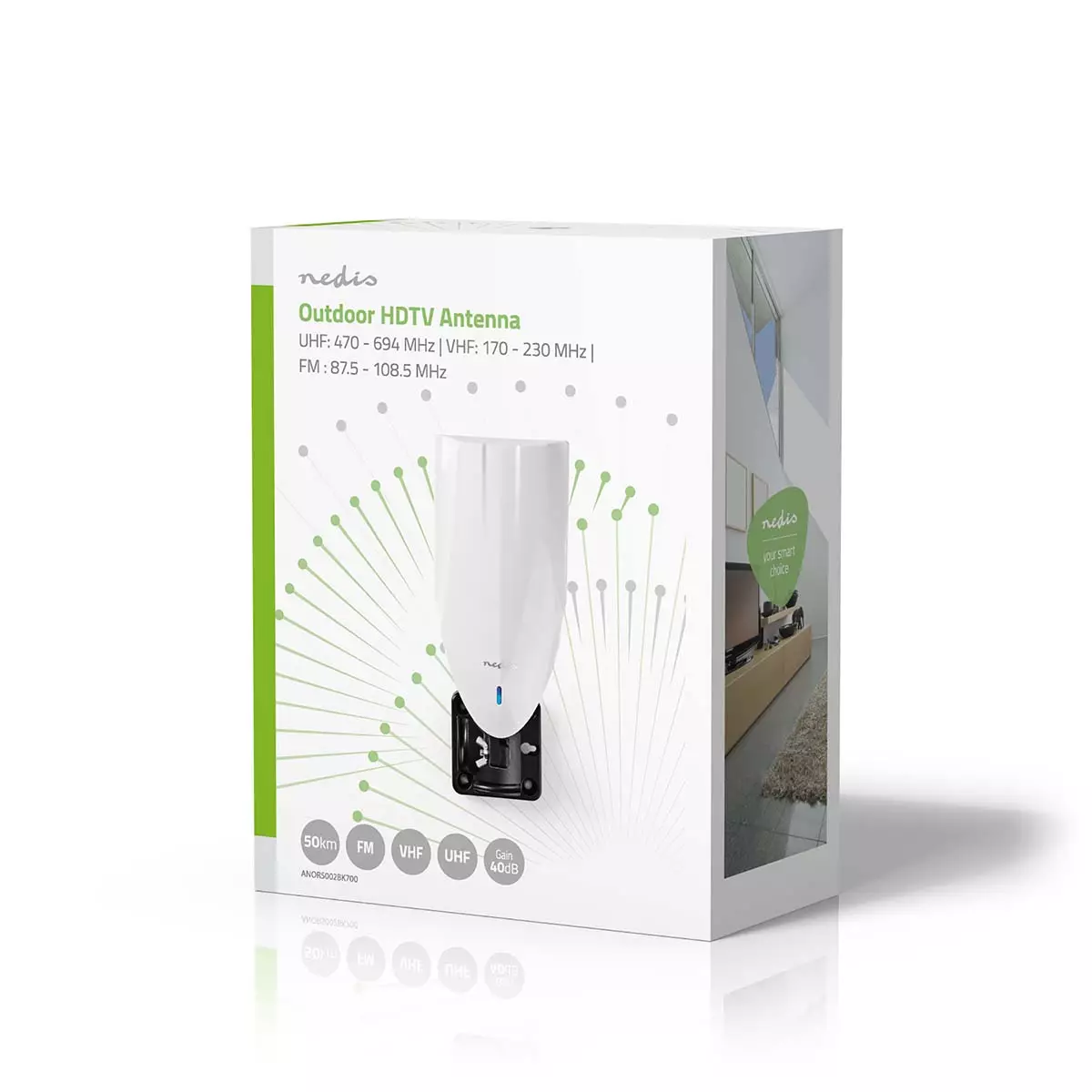 Aktiivinen | Liittimen tyyppi: F-liitin | FM / UHF / VHF | Vastaanottoalue: 0-50 km | LTE700 | Vahvistus: 25 dB | Musta / Valkoinen