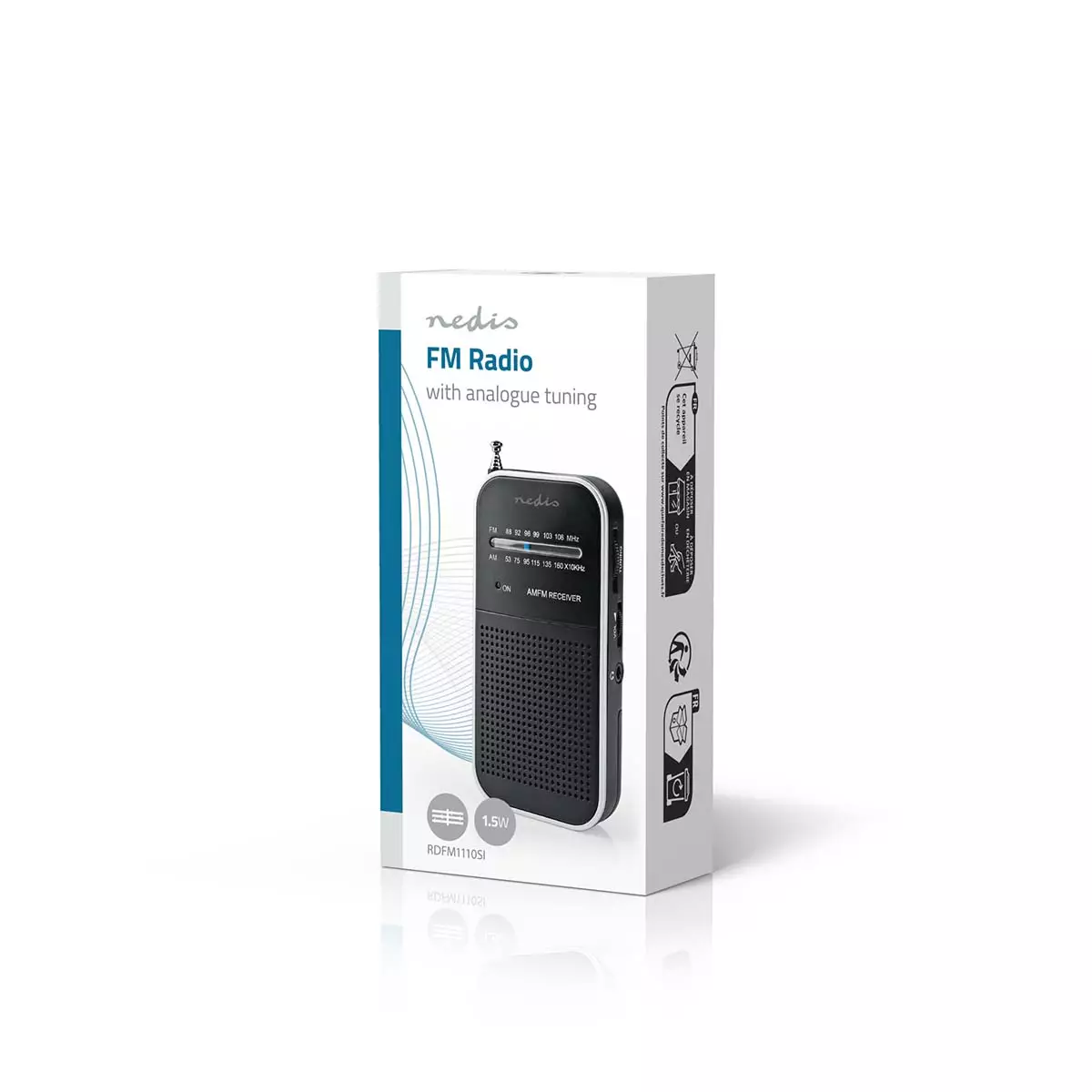 Kannettava malli | AM / FM | Paristokäyttöinen | Analoginen | 1.5 W | Mustavalkoinen näyttö | Kuulokkeiden lähtöliitäntä | IP20 | Alumiini / Musta