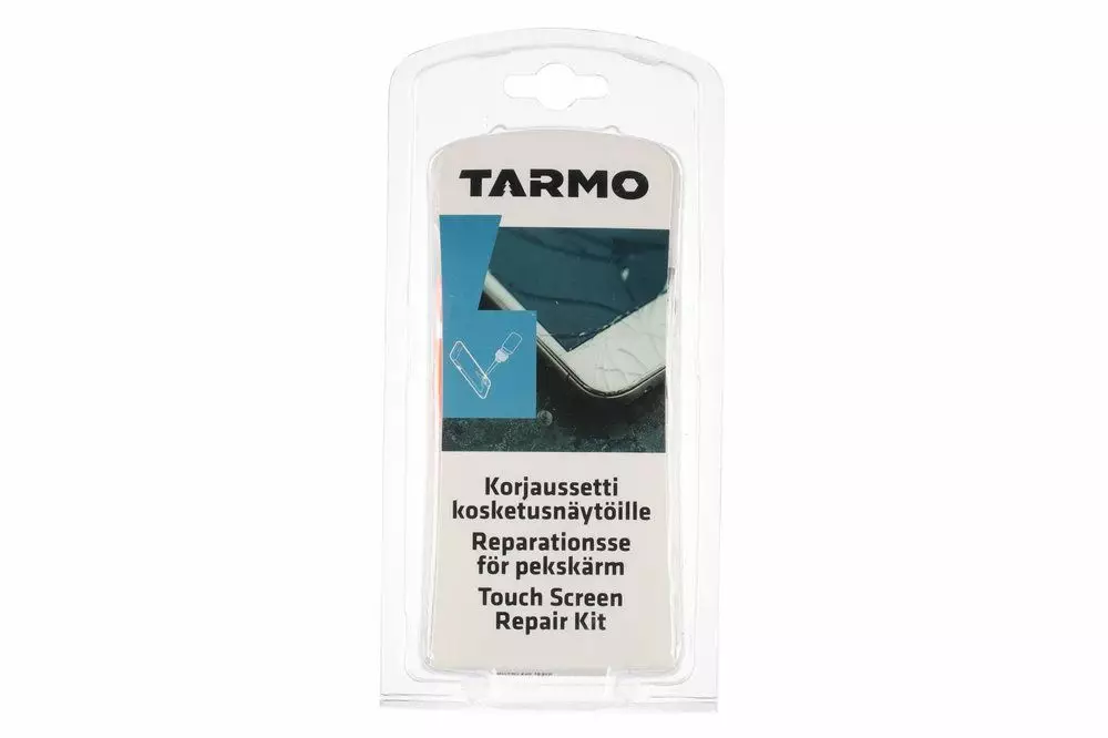 Korjaussetti kosketusnäytöille. Estä haljenneen näytön lisävahingoittuminen tai korjaa pahasti vaurioituneet näytöt jälleen käyttökuntoisiksi. Setti ei poista kaikkia jälkiä haljenneesta näytöstä, mutta palauttaa näytön käyttökuntoiseksi ja ehkäisee lasinsirujen irtoamisen näytöstä. Setti sisältää 2 pulloa korjaushartsia, 1 neulan, 1 puhdistusliinan, 1 maalarinteippirullan, 4 kalvoa, 1 terän, 6 kangasta, 1 pullon aktivaattoria, 2 alkoholiliinaa puhdistukseen.