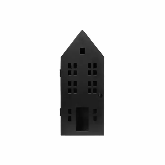 Musta talonmuotoinen avainkaappi. Koukut kuudella avaimelle. Ovessa magneettikiinnitys. Materiaali metalli. Max. kuormitus 1 kg. Koko 15 x 7,5 x 35 cm.