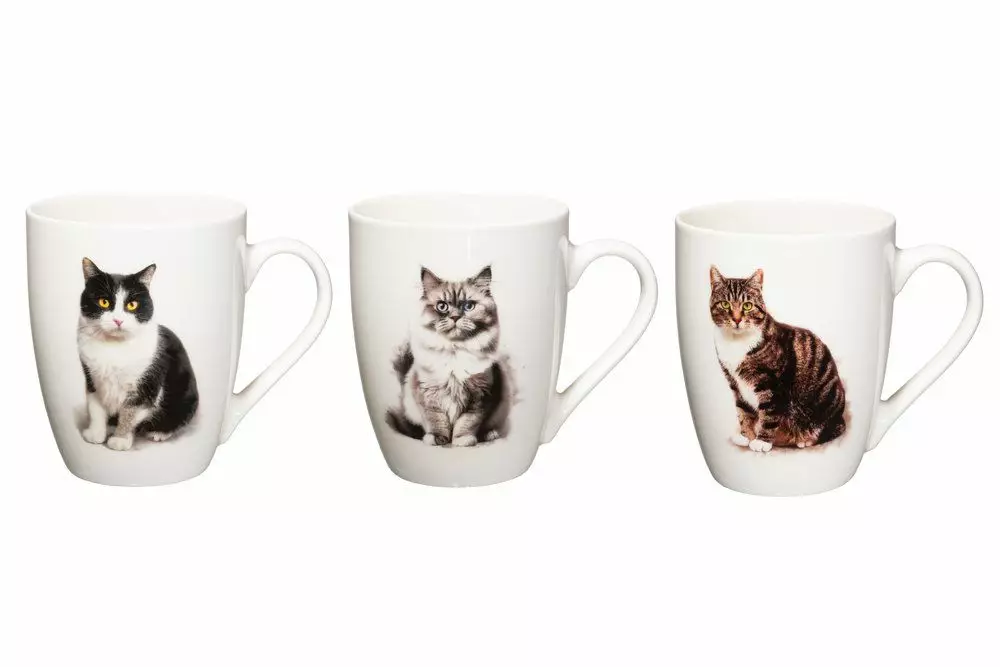 Suloinen posliinimuki kissojen kuvilla. Vetoisuus 34 cl. Mikron ja astianpesukoneen kestävä. Voit ilmoittaa mallitoiveesi ostoskorin lisätietokentässä.