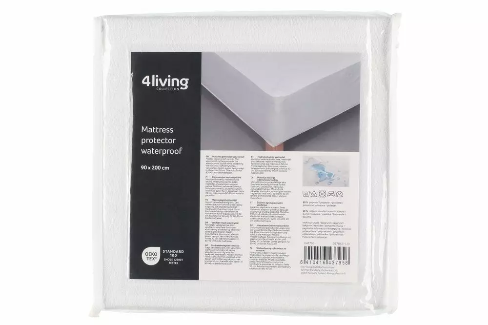 Muotoonommeltu nesteenpitävä lakana. Vedenpitävä pinta estää nesteiden imeytymisen suojaten patjaa. Päällinen pehmeää froteeta. Muotoonommeltu, joustoreunuksellinen malli pysyy hyvin paikallaan, taite 25 cm. Koko sopiva 80-90cm leveisiin patjoihin. Tuotteella on Ökotex-sertifikaatti, mikä tarkoittaa että tuote on turvallinen eikä se sisällä haitallisia kemikaaleja.