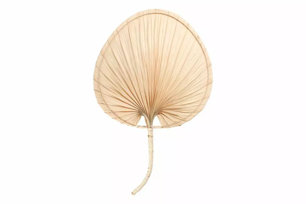 Kaunis palmunlehdestä valmistettu seinäkoriste sopii niin moderniin kuin boheemiinkin kotiin. Seinäkoristeen luonnollinen väri tuo sisustukseen lämpöä ja maanläheisyyttä.