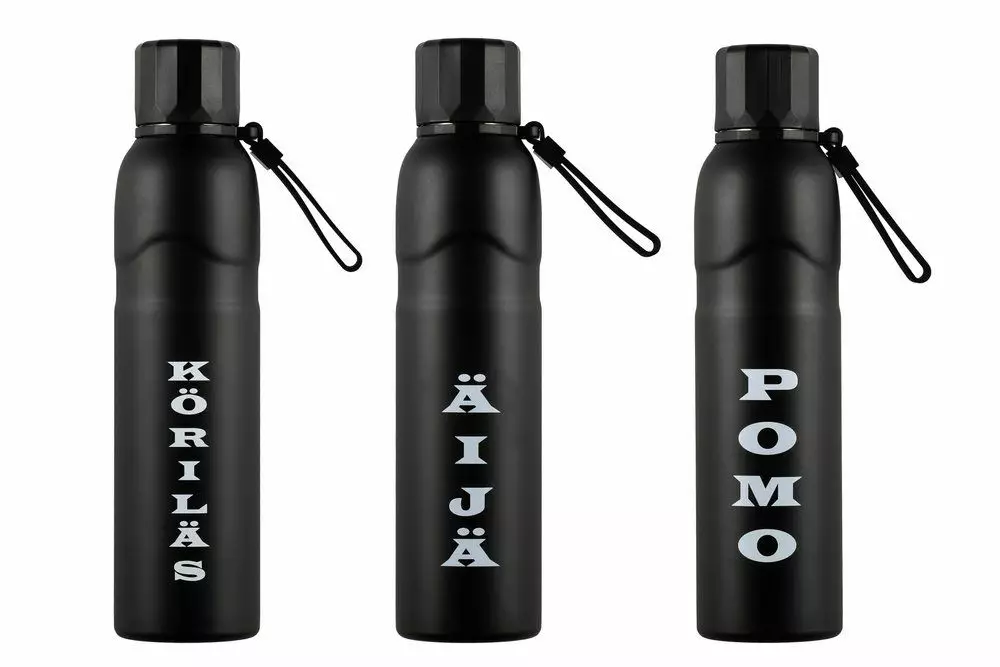 Atom juomapullo tekstillä