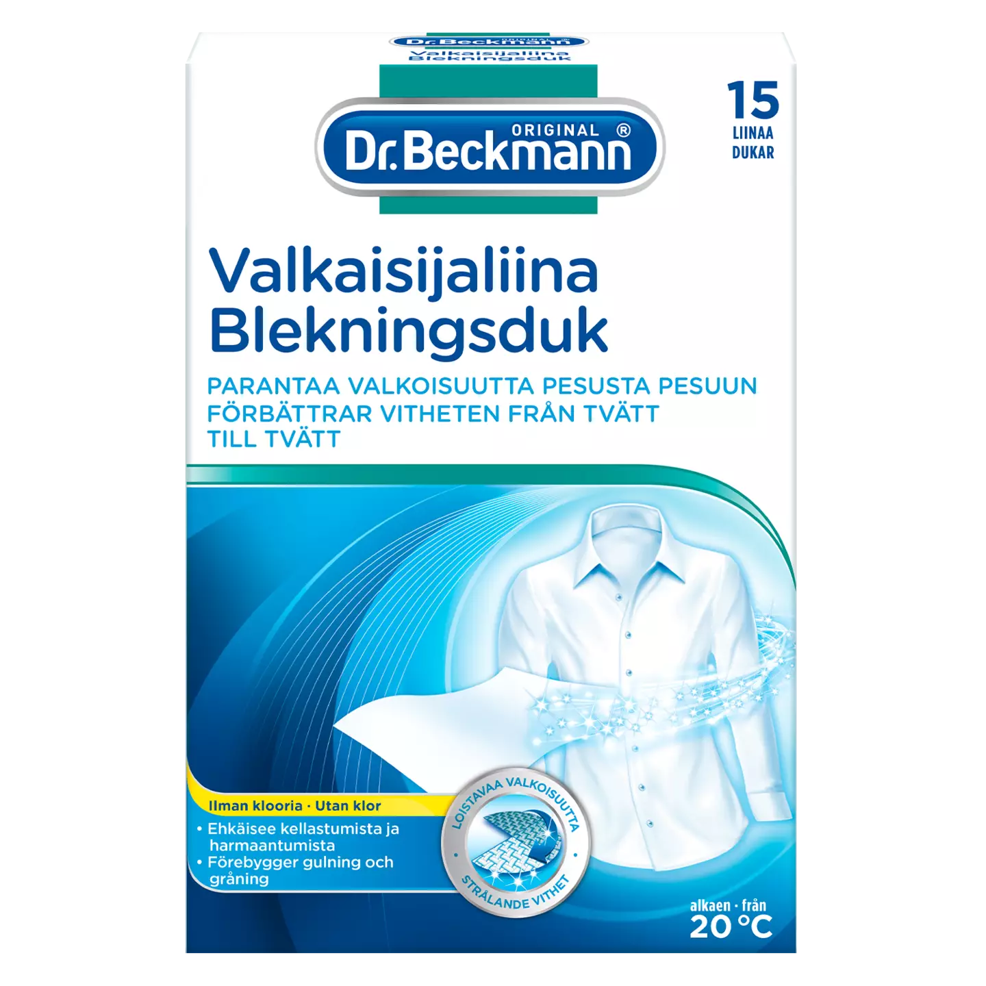 Lukuisat pesukerrat ja jäämät pesuvedessä saavat valkoiset tekstiilit harmaantumaan ajan kuluessa. Epämiellyttävää kellastumista voi kehittyä, jos tekstiilejä varastoidaan pitkiä aikoja. Dr. Beckmann Valkaisijaliina ja sen hienostunut optisten kirkastusaineiden yhdistelmä ehkäisevät luotettavasti harmaantumista ja kellastumista sekä muuttavat valkopyykin jälleen hohtavan valkoiseksi.