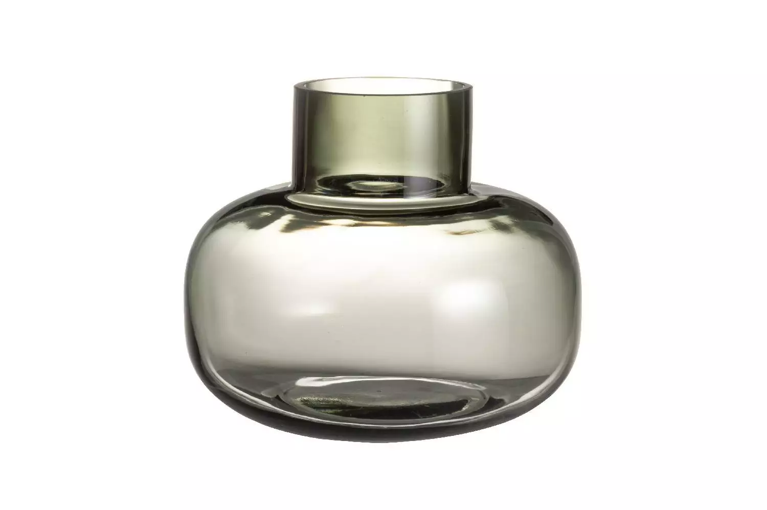 Kauniisti muotoiltu Fanni K:n Ilma-maljakko on läpivärjättyä lasia. Leveys 19 cm, korkeus 16 cm. Väri tummanharmaa. Käsinpesu.