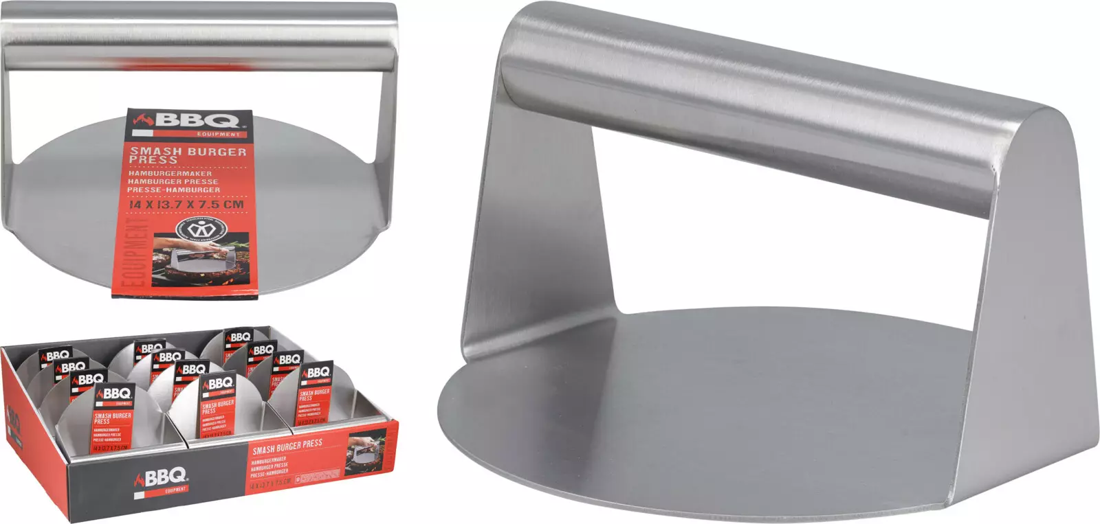 Tämä hampurilaispihvirauta tekee kotigrillauksesta ja pannulla paistamisesta helppoa ja tasalaatuista. 140×13×75 mm kokoinen rauta muotoilee pihvit täydellisesti sopivan kokoisiksi ja paksuisiksi, varmistaen tasaisen kypsennyksen joka kerta.
