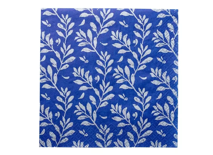 Havin valmistamat kotimaiset lautasliinat. Kaunis Olivia sinihopea lautasliina sopii erinomaisesti juhlallisiin loppuvuoden kattauksiin. Lautasliinat ovat painettu Imatralla 3-kertaiselle pehmopaperille ja niille on myönnetty Avainlippu.