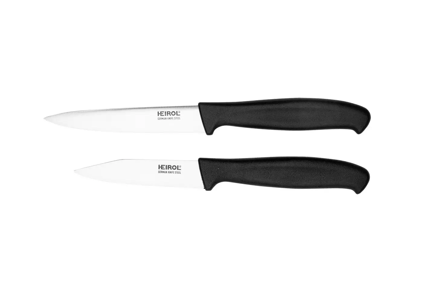 Vihannesveitsi suoralla terällä on kätevä esimerkiksi vihannesten leikkaamiseen, kuorimiseen ja pilkkomiseen.Sisältää kaksi veistä, terien pituudet ovat 10 cm ja 8 cm.