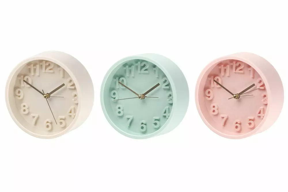 Pyöreä herätyskello, jossa kohokuvioidut numerot ovat samaa väriä kuin kellotaulu. Hiljainen koneisto varmistaa, ettei tikitys häiritse untasi tai keskittymistäsi. Paristo 1 x AA (ei sisälly pakkaukseen).