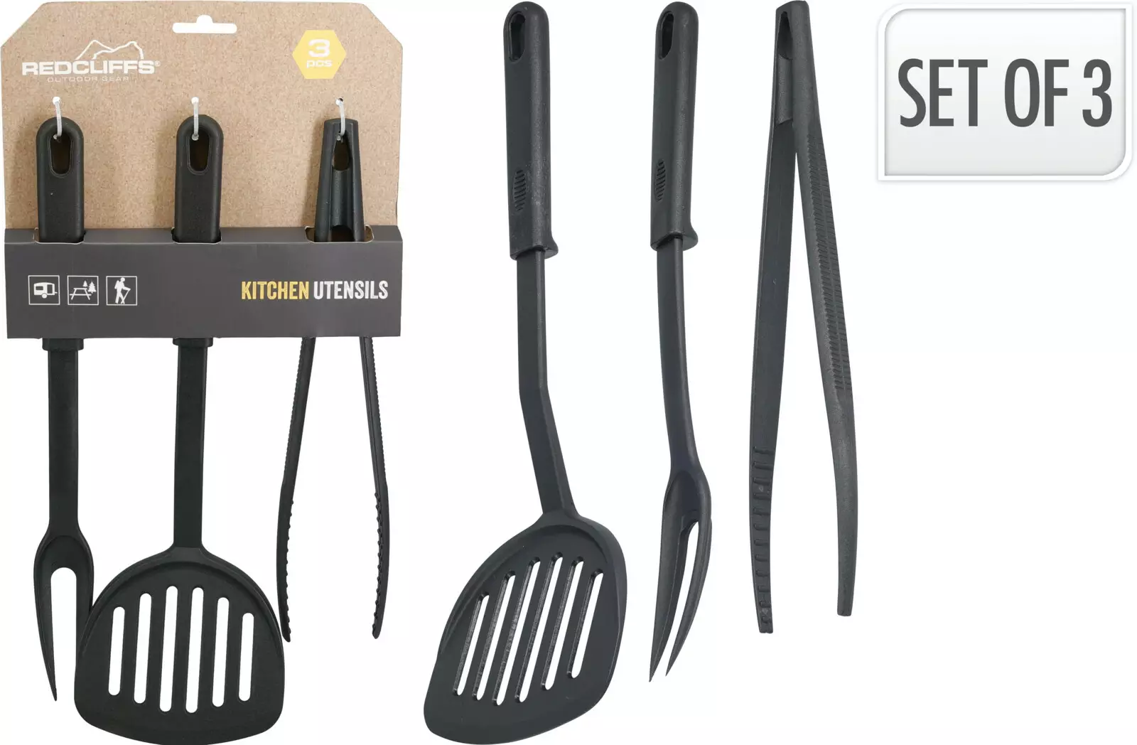 Käytännöllinen keittiövälineiden setti, joka sisältää 3 erilaista työkalua päivittäiseen ruoanlaittoon. Setti sopii ruoan sekoittamiseen, nostamiseen ja tarjoiluun, ja se tekee ruoanlaitosta sujuvaa ja mukavaa.