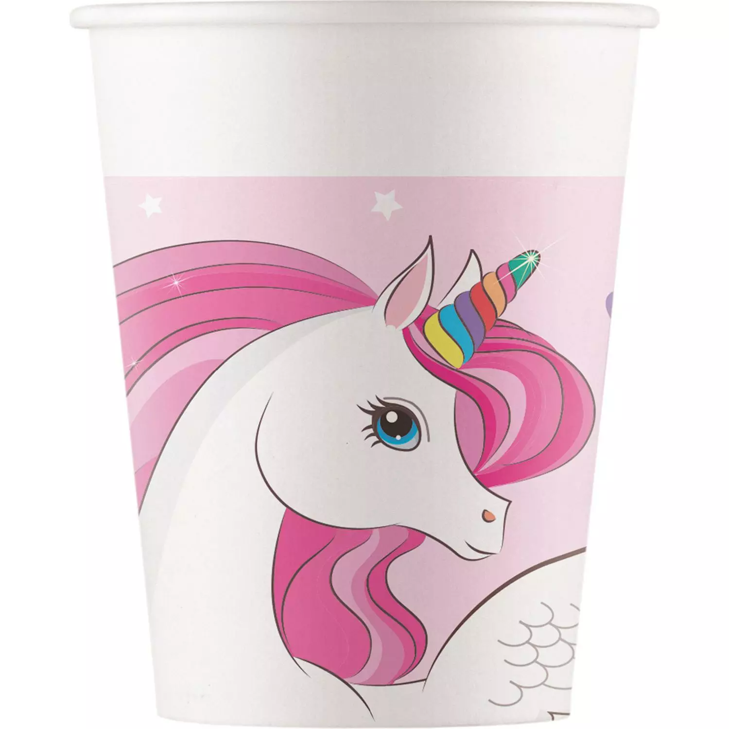 Värikäs kartonkinen kertakäyttömuki lastenjuhliin. Vetoisuus 200 ml. 8 kpl/pakkaus.