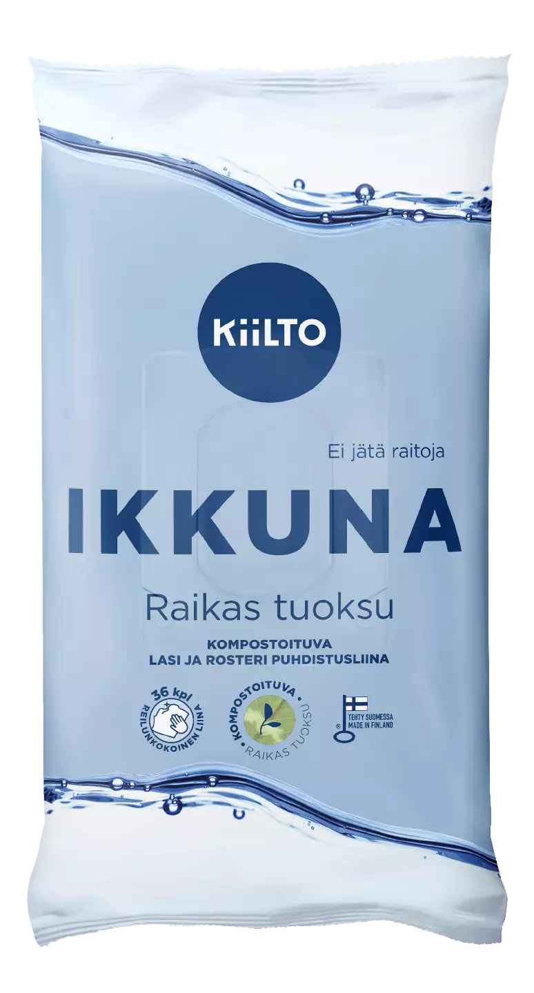 Kiilto Ikkunapuhdistusliinalla pidät kotisi ikkuna-, lasi- ja rosteripinnat kätevästi puhtaina. Puhdistusliinalla pyyhit pölyt ja tahrat helposti ja nopeasti kosteaa pyyhkimistä kestäviltä pinnoilta. Reilun kokoinen liina sopii isommankin pinnan pyyhkimiseen ja se poistaa tehokkaasti tahrat ja muun lian lasi- ja rosteripinnoilta.