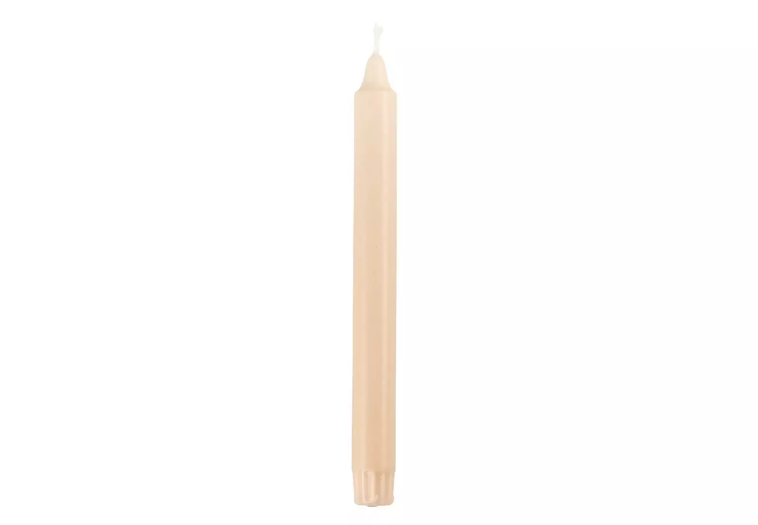 Klassinen kruunukynttilä beigenä. Kynttilä on valmistettu 100 % steariinista. Joutsenmerkki. Paloaika n. 8h.