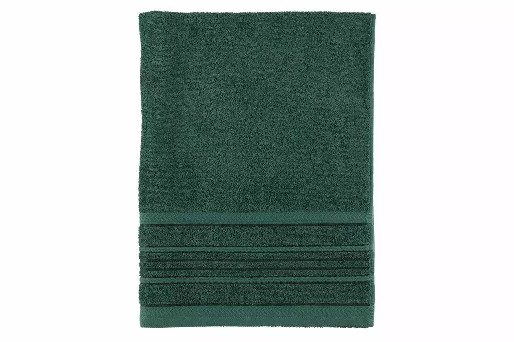 Pehmeä ja imukykyinen frotee-kylpypyyhe. Ripustuslenkki pyyhkeen pitkällä sivulla. Materiaali 100 % puuvilla. Väri tummanvihreä. Pesu 60 asteessa. Ökotex.