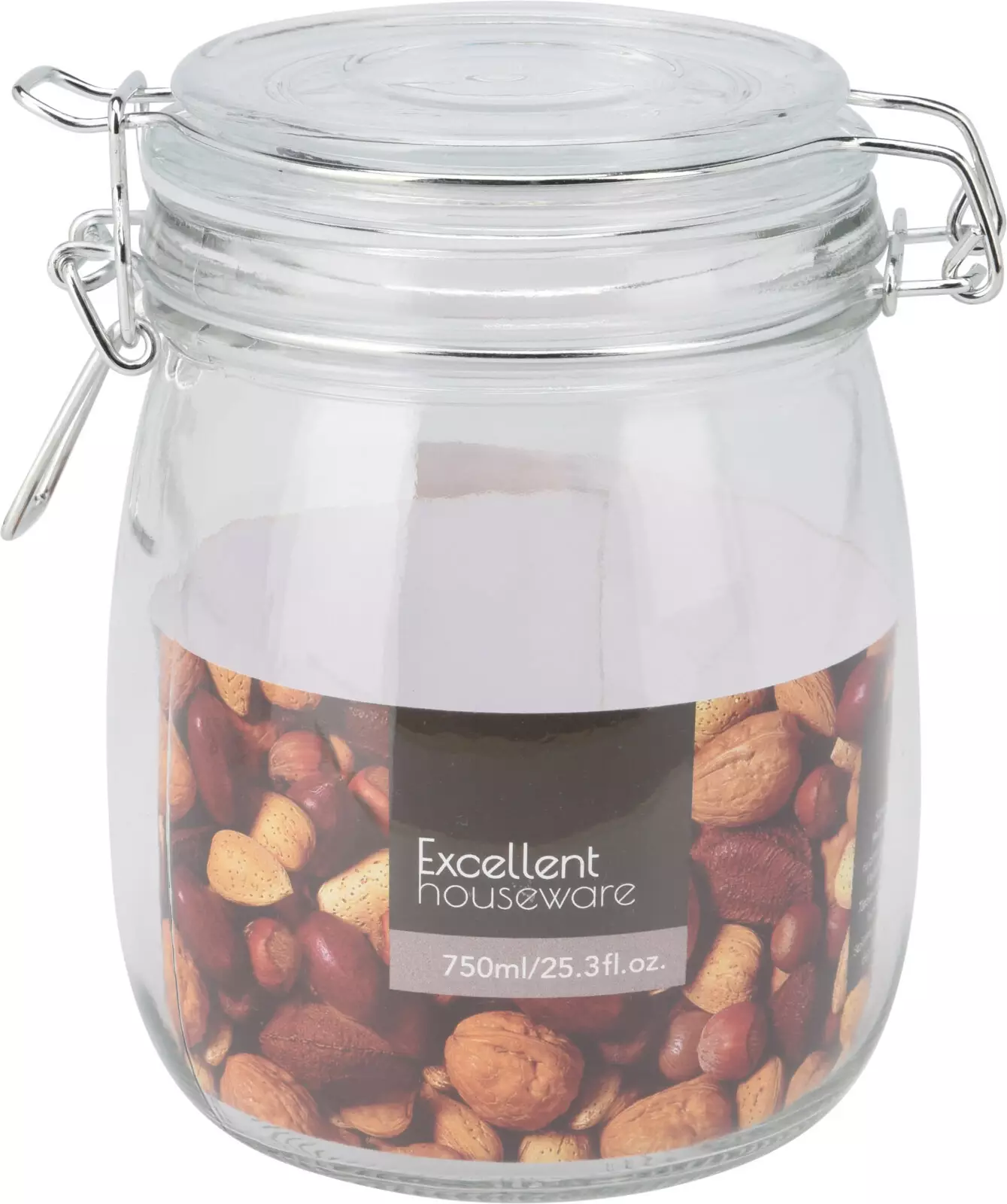 Kompakti ja tyylikäs 750 ml lasipurkki kannella keittiön säilytykseen ja järjestämiseen. Purkki sopii erinomaisesti kuivatuotteille, kuten pähkinöille, kahville, teelle, sokerille ja muille pienemmille raaka-aineille. Läpinäkyvä lasi tekee sisällön helposti näkyväksi ja tuo keittiöön siistin, yhtenäisen ilmeen.