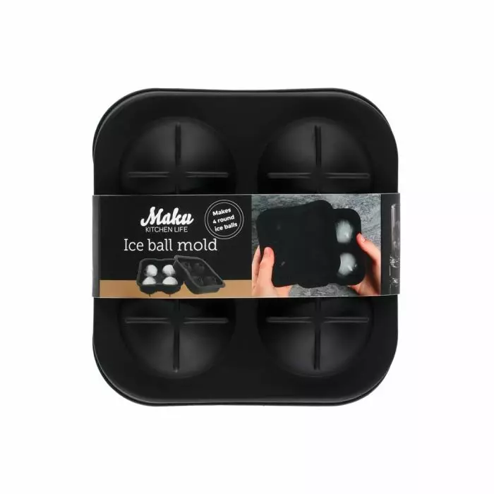 Silikonista valmistettu jääpalamuotti, jolla voi valmistaa neljä pallonmuotoista jääpalaa. Joustavasta muotista jääpallot on helppo irrottaa. Käsinpesu.
