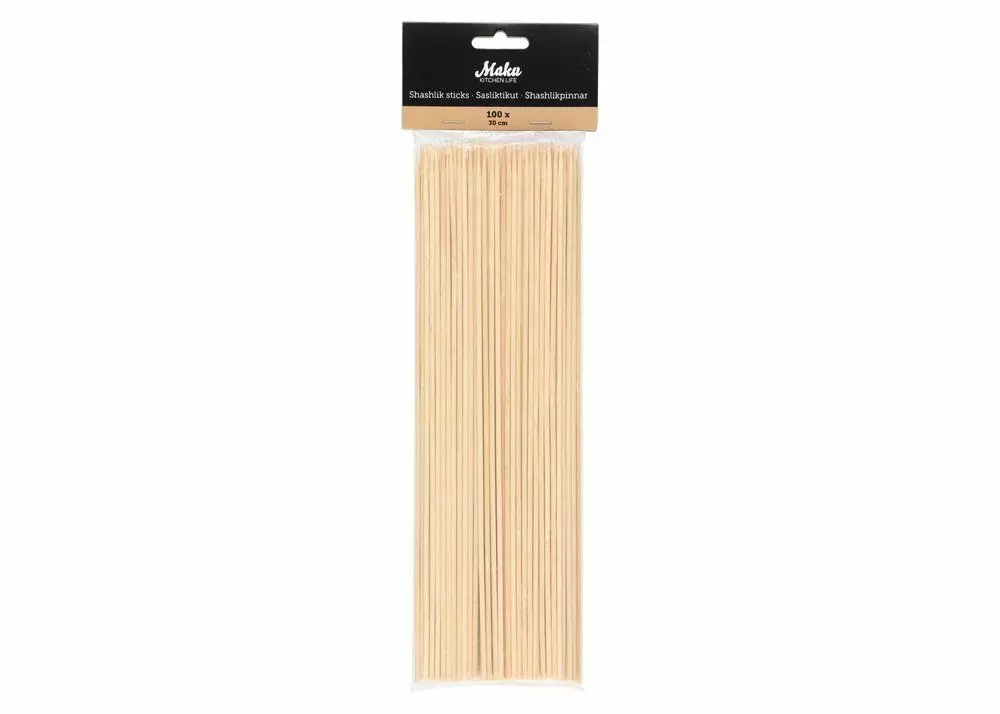 Varrastikut grilliherkkujen valmistamiseen. Liota tikkuja vedessä noin tunti ennen käyttöä. Anna lihojen marinoitua erillisessä astiassa. Pujota kasvikset ja lihanpalat vartaaseen vasta juuri ennen grillauksen aloitusta. Bambutikkujen pituus 30 cm. Kierrätä tuote biojätteenä tai kotikompostissa.