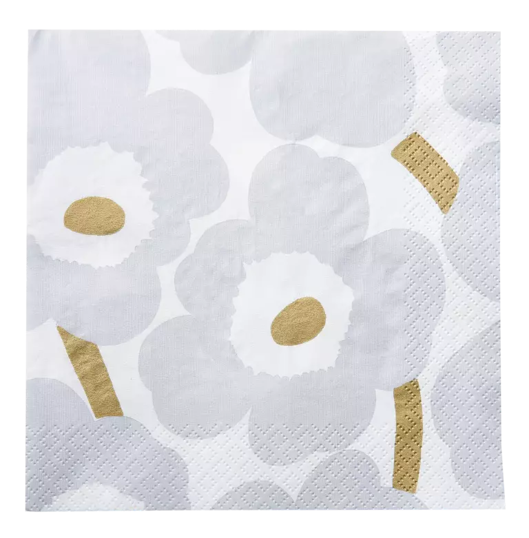 Näyttävät Marimekon Unikko lautasliinat kauniissa harmaassa värityksessä. Klassisen kuosin suunnitteli Maija Isola vuonna 1964. Kotimaiset lautasliinat ovat Havin valmistamat ja ne ovat painettu Imatralla 3-kertaiselle pehmopaperille. Lautasliinoille on myönnetty Avainlippu, Joutsenmerkki ja FSC.