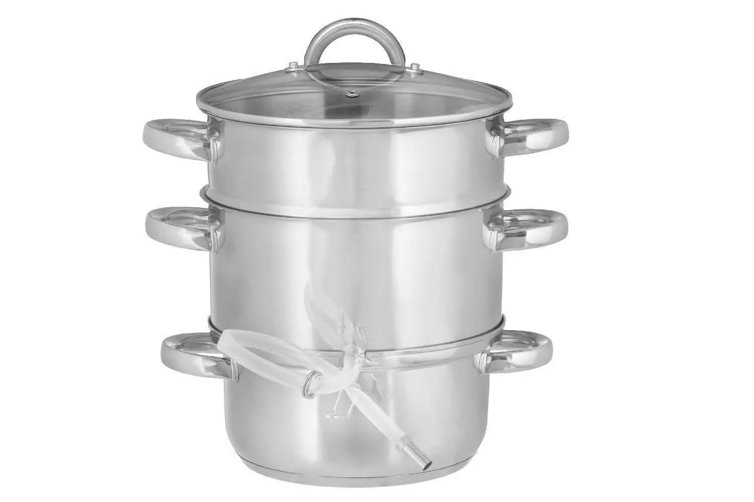 Kerää kesän maut talteen ja yhdistele rohkeasti erilaisia marjoja, hedelmiä ja yrttejä herkullisiksi juomiksi. Valmista lempimehuasi helposti ja nopeasti. Hedelmä-/marjasäiliön vetoisuus 5 L. Pakkaus sisältää letkun ja puristimen. Soveltuu myös induktioliedelle. Teräsosat voidaan pestä astianpesukoneessa, letku käsinpesu.