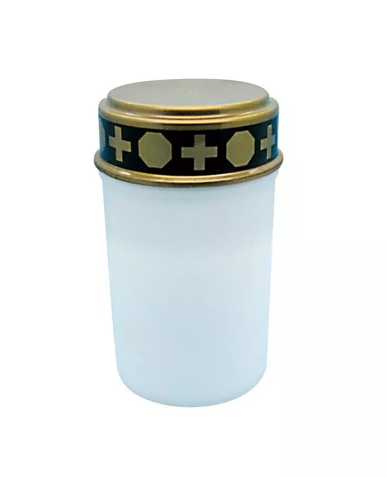 Ristikuvioin koristeltu led-hautakynttilä. Led 2 kpl keltainen, "eläväliekkinen", ei vaihdettava led, paloikä n. 10 000 h. Paristot 2 kpl C/LR14, ei sisälly.
