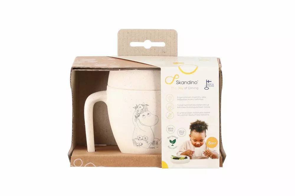 Skandino® on sarja EcoDesign-astioita lapsille. Skandinon tuotteet valmistetaan Suomessa, ja ne on suunniteltu ja kehitetty yhteistyössä puheterapeuttien ja toimintaterapeuttien kanssa. Muki tukee luonnollista nielemistä ja kehittää mukista juomisen taitoa. Skandino®-nokattoman nokkamukin pitkät kahvat tekevät mukin käytöstä helppoa. Rajoitinkansi ja alaspäin kapeneva muoto tukevat turvallista juomisen kehittymistä. Mukia voidaan käyttää ilman kantta, kun lapsi on oppinut juomaan itsenäisesti. Ei aiheuta suun motorisia ongelmia. Tuotteet ja niiden biomateriaali ovat kestäviä, testattuja ja turvallisia. Mikron ja konepesun kestävä.