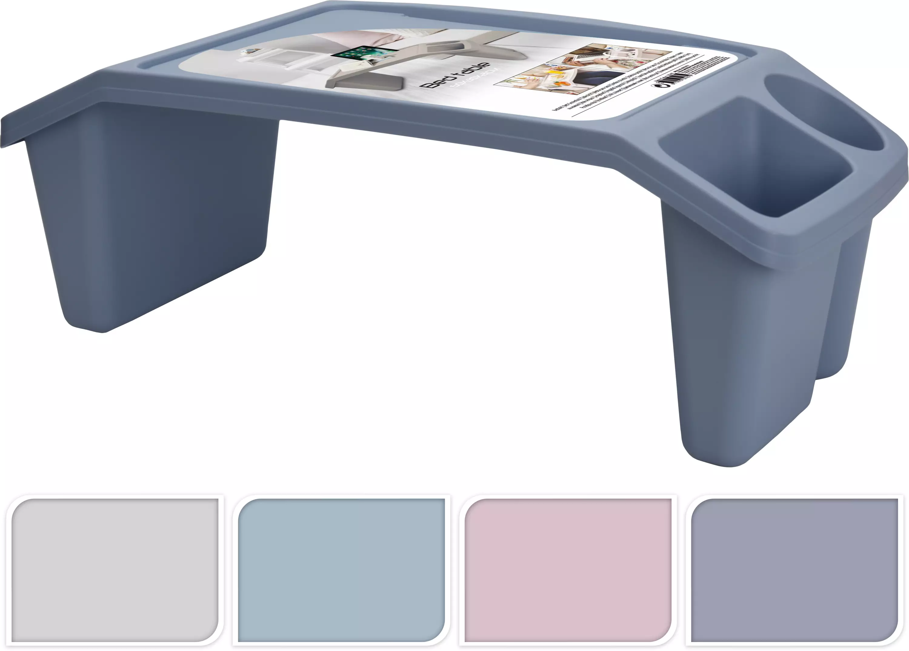 Käytännöllinen ja kevyt muovinen sylipöytä tekee työskentelystä, opiskelusta tai ruokailusta mukavaa missä tahansa. Sylipöydässä on neljä säilytystaskua, joihin mahtuvat helposti kynät, puhelin, juomapullo tai muut tarvikkeet. Sopii mainiosti sohvalle, sänkyyn tai retkikäyttöön.Valmistettu kestävästä muovista, sylipöytä on helppo pyyhkiä puhtaaksi ja kevyt liikutella. Se sopii hyvin sekä aikuisille että lapsille.
