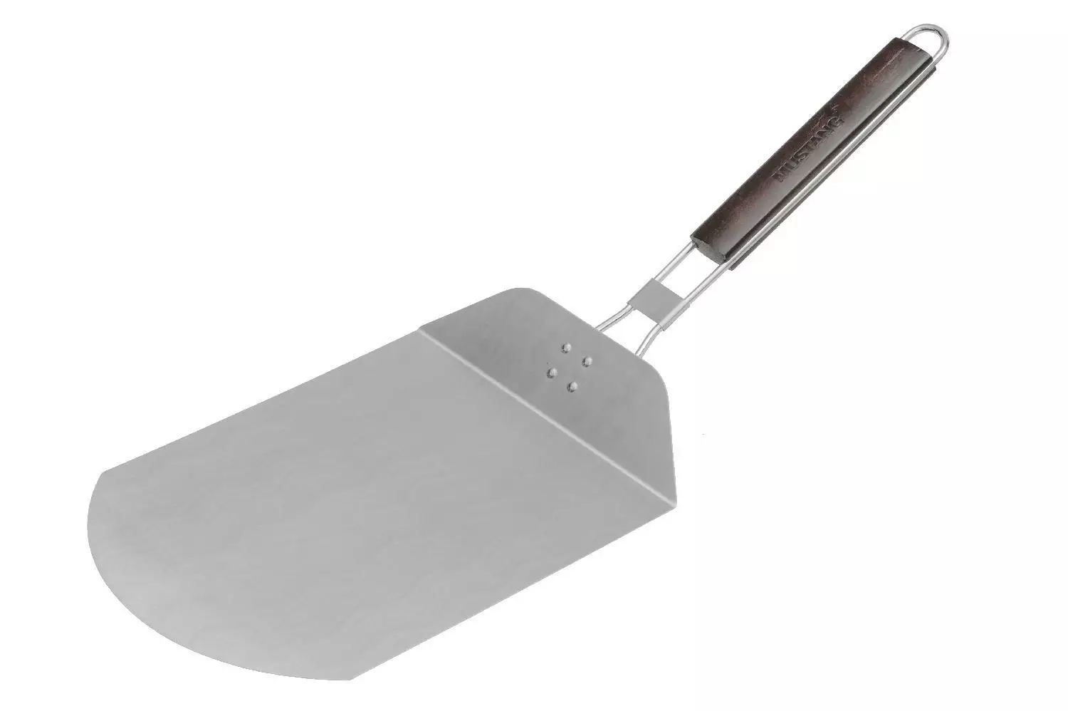 Teräksinen pizzalasta. Pituus 65 cm, lasta 30 x 25 cm. Kokoontaitettava. Käsinpesu.