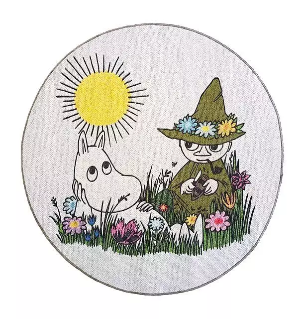 Helppohoitoinen Muumi-matto liukuestepohjalla.