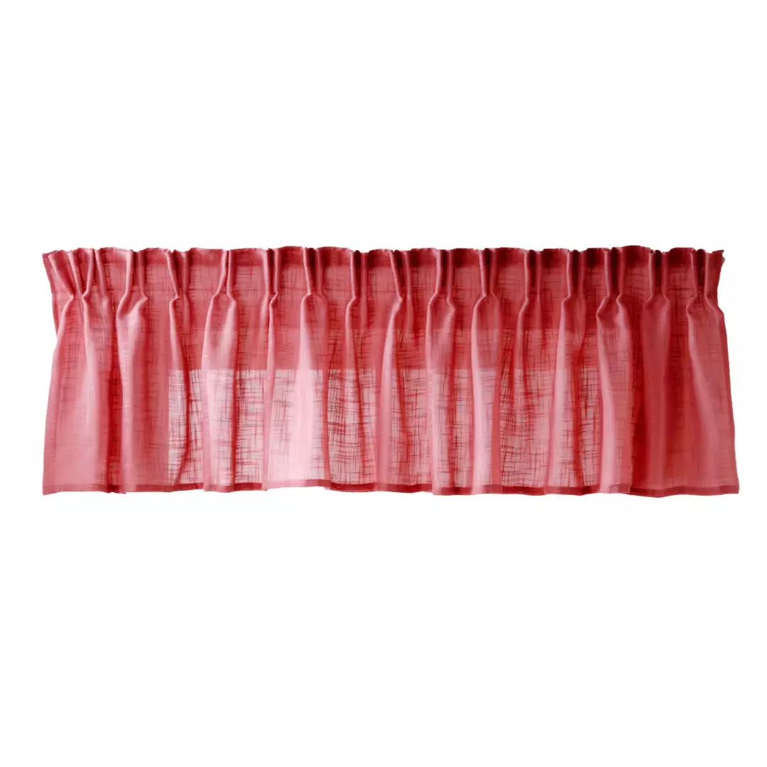 Kaunis, kuivaa pellavakuviota oleva ja puoliläpinäkyvä kappaverho. Verhossa on monitoiminen ripustusnauha, 45x250 cm. 100 % polyesteriä.