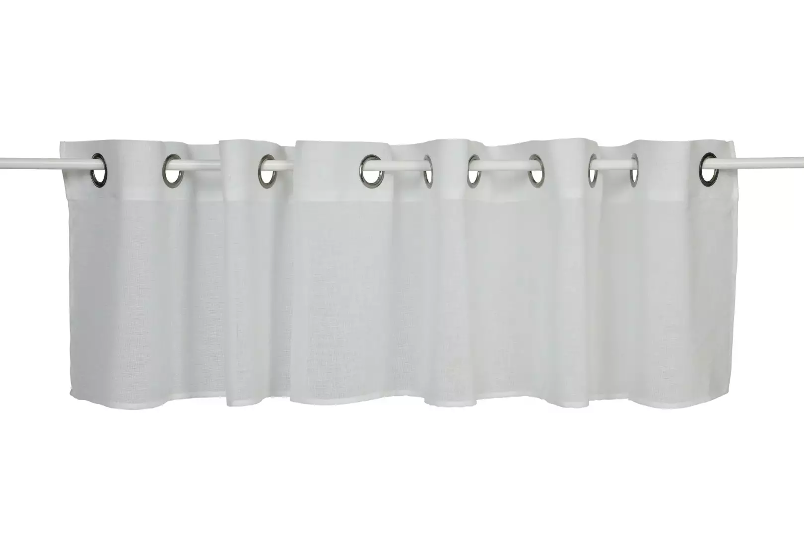 Läpikuultava Noble House Stina kappaverho purjerenkailla, muistuttaa pintastuktuuriltaan pellavaa. Koko: 45 x 250 cm Materiaali: 100 % polyesteri