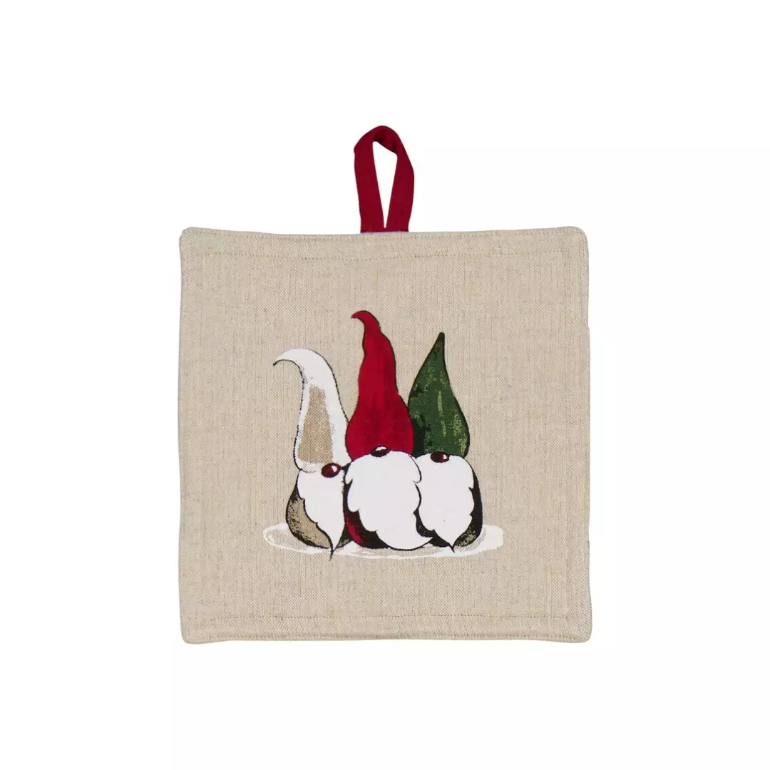 Tässä kankaisesta patalapussa on mukavan sileä pellavapinta ja kaunis tonttukuvio. Patalappu on valmistettu 100 % kierrätysmateriaalista.