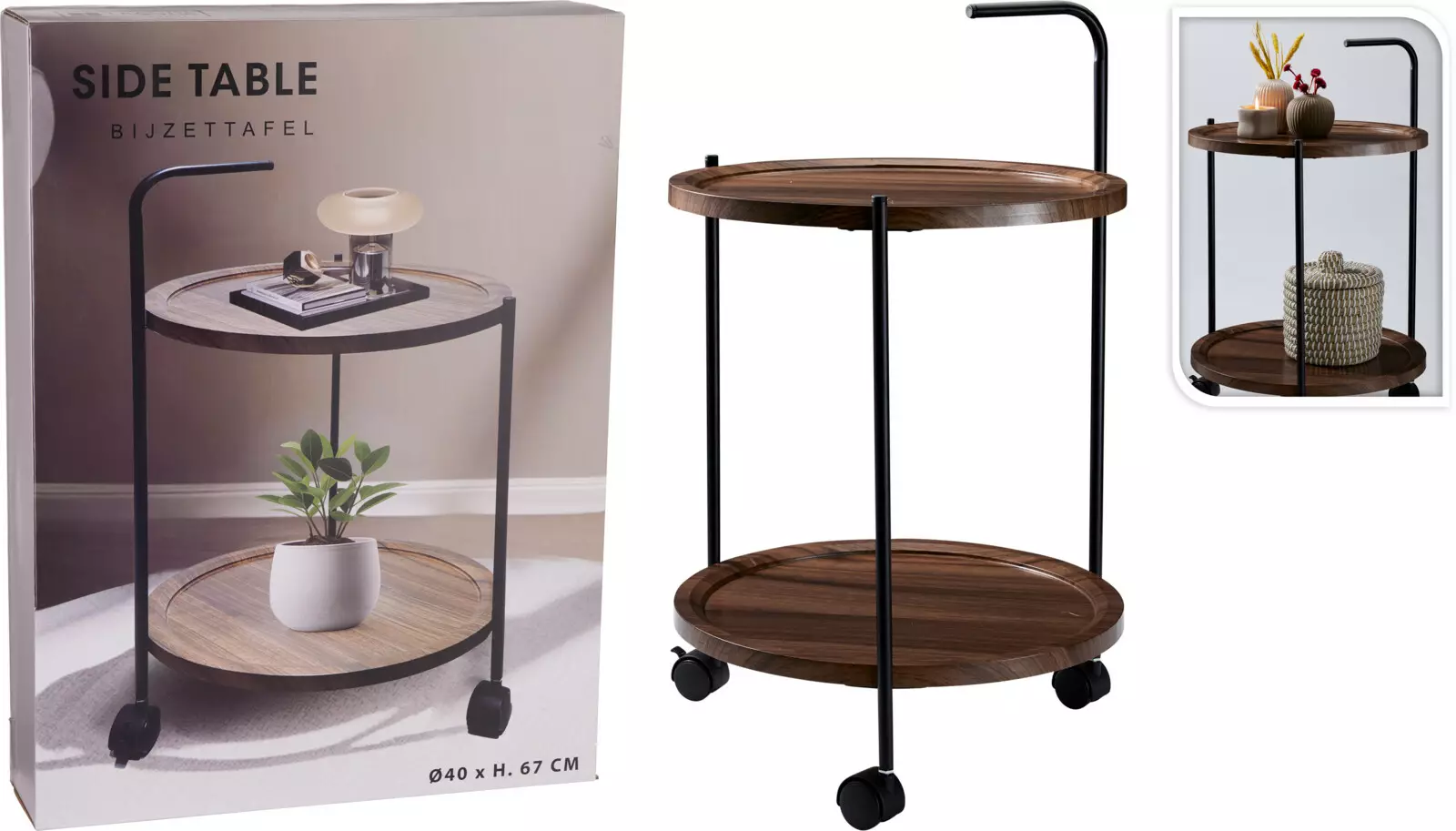 Tämä 2-tasoinen pöytä pyörillä on käytännöllinen ja monikäyttöinen apupöytä kotiin, työtilaan tai varastoon. Pyörien ansiosta pöytä on helposti liikuteltavissa, ja kaksi tasoa tarjoavat runsaasti säilytys- ja työskentelytilaa.