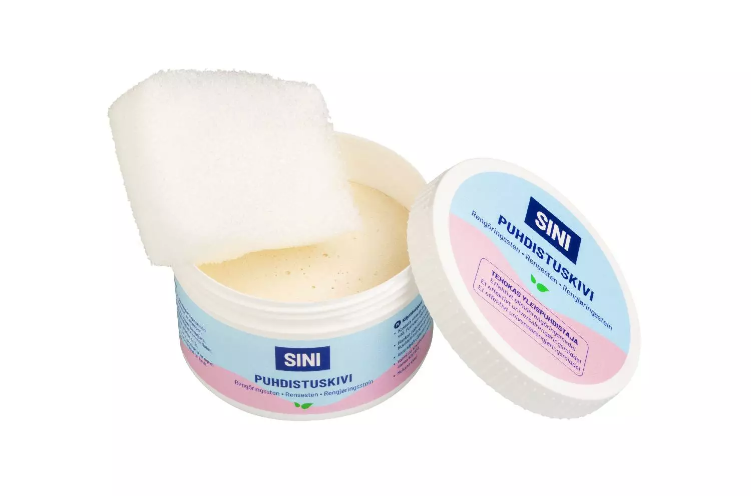 Puhdistuskivi on ekologinen ja tehokas puhdistusaine kodin sisä- ja ulkotiloihin. Se on todella monipuolinen kodin yleispuhdistaja. Puhdistuskivellä puhdistat hankalatkin tahrat ja pinttyneen lian esimerkiksi kylppärin ja keittiön pinnoilta. Puhdistuskivi on hankaava aine, joka ei kuitenkaan naarmuta pintoja. Mukana sieni. Kokeile esimerkiksi tiskipöydän, tiskialtaan, kattiloiden, uunipeltien, suihkuseinän, saunan lasioven, kaakeleiden ja hanojen puhdistamiseen. Ulkotiloissa kokeile vaikkapa muovisten puutarhakalusteiden tai kukkaruukkujen puhdistukseen. Kätevä myös veneessä ja mökillä. Biohajoava ja myrkytön. Raikas sitruunan tuoksu.