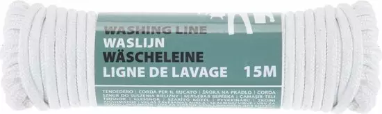 Valkoinen polyesteri pyykkinaru 15m.