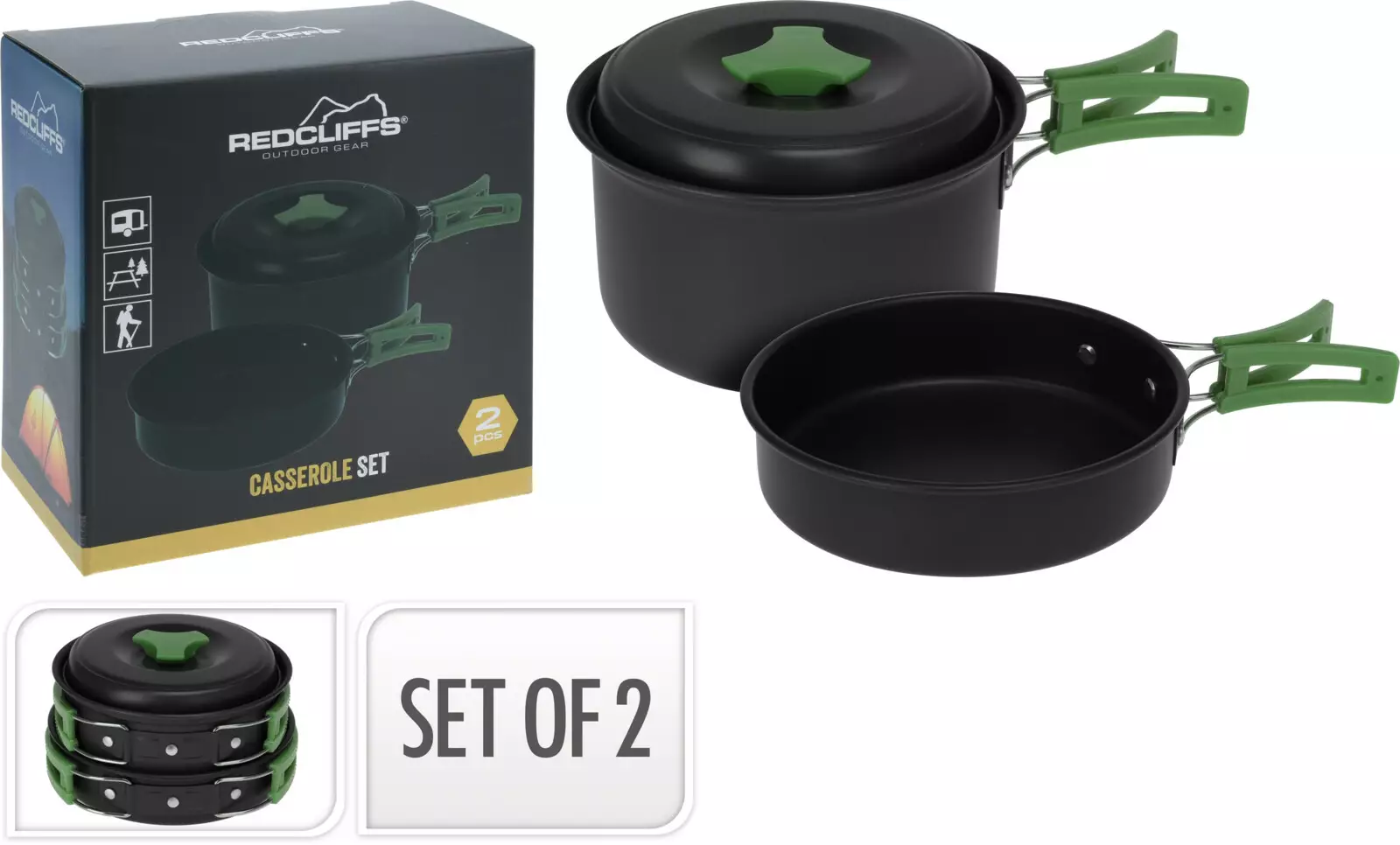 Kevyt ja käytännöllinen 2-osainen retkikattilasetti ulkoiluun, retkeilyyn ja camping-käyttöön. Kattilat soveltuvat erinomaisesti veden keittämiseen, ruoanlaittoon ja lämmittämiseen esimerkiksi retkikeittimen tai nuotion päällä.