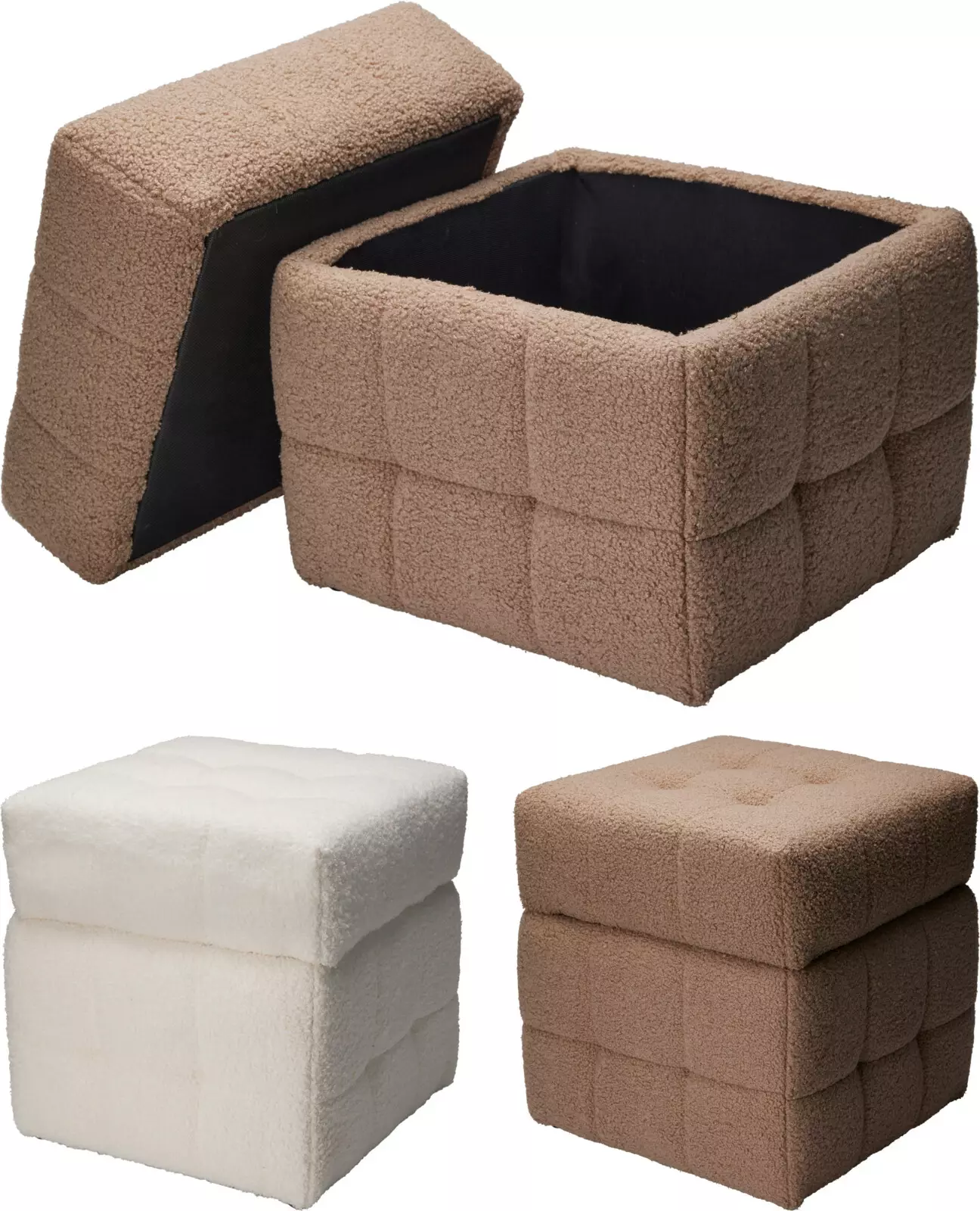 Tämä tyylikäs ja käytännöllinen Pouf with Storage on täydellinen lisä kotiisi. Se toimii sekä istuimena että kätevänä säilytystilana, jossa voit pitää järjestyksessä tavaroita. Pouf on valmistettu kestävästä MDF- ja plywood-rakenteesta, ja sen pehmustettu pinta on valmistettu pehmeästä teddy-materiaalista, joka tuo lisämukavuutta ja tyyliä. Saatavilla kahdessa kauniissa väriyhdistelmässä: off white ja ruskea. Voit ilmoittaa toivomasi värin ostoskorin lisätietokentässä. Mikäli toivomaasi väriä ei ole varastossa, toimitamme sattumanvaraisen värin varastotilanteen mukaan.