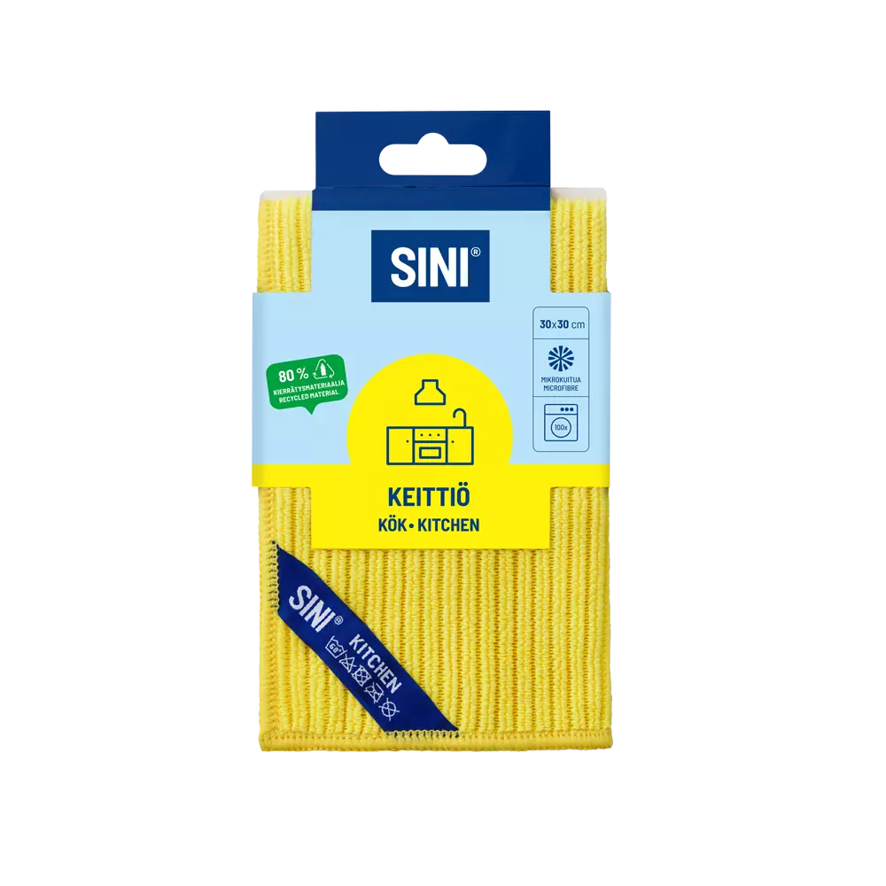Mikrokuituisella keittiöliinalla puhdistat keittiön pinnat tehokkaasti ja hygieenisesti – jopa ilman puhdistusaineita. Liinan raidallinen pintarakenne vangitsee muruset ja auttaa puhdistamaan vaikeatkin tahrat pelkän veden avulla. Rasvalika puhdistuu erityisen tehokkaasti keittiöliinan ja SINI Keittiöpuhdistusaineen avulla. Pinnan rakenteen ansiosta puhdistaa tehokkaasti jopa ilman puhdistusaineita. Kestää kymmeniä pesukertoja pesukoneessa (60 ?C). Käytä aina pesupussia. Ripusta liina kuivumaan ilmavasti kätevän ripustuslenkin avulla. Liinat on nimetty käyttökohteiden mukaan – siksi ne on helppo tunnistaa. SINI mikrokuituliinojen valmistuksessa on käytetty kierrätettyjä PET-pulloja (n. 80 % materiaalista). Käytä yhdessä SINI Keittiöpuhdistusaineen kanssa.