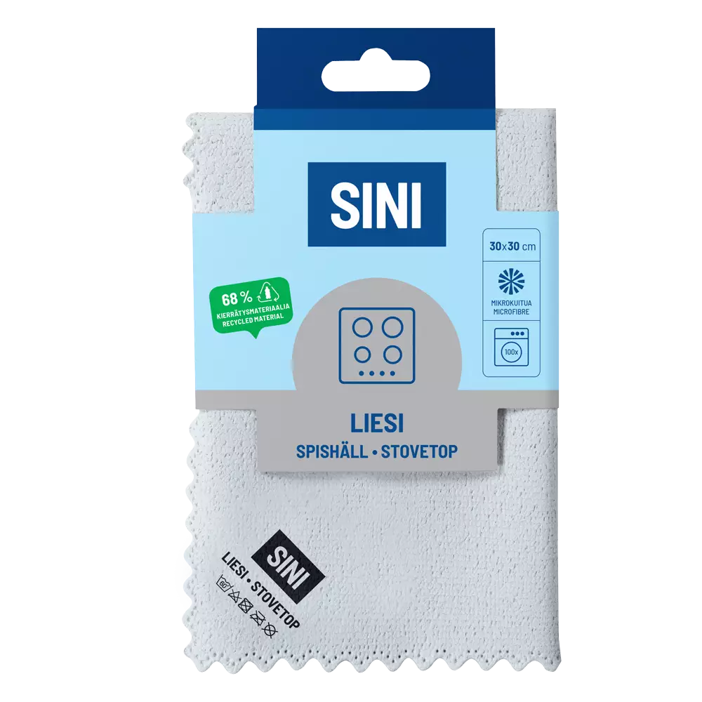 Älä turhaan huhki lieden ääressä. Liesiliina poistaa rasvan sekä sormenjäljet tehokkaasti jopa pelkällä vedellä keraamisen ja induktiolieden pinnalta. Sopii myös rosterille. Kuivana liina kiillottaa pinnat, eikä jätä pyyhkimisjälkiä. Puhdasta jopa ilman pesuaineita. Käyttökohde on painettu liinaan – helppo muistaa. Kestää kymmeniä pesukertoja pesukoneessa (40 ?C). Käytä aina pesupussia. SINI mikrokuituliinojen valmistuksessa on käytetty kierrätettyjä PET-pulloja (n. 80 % materiaalista). Kokeile myös yhdessä SINI Keittiöpuhdistusaineen kanssa.