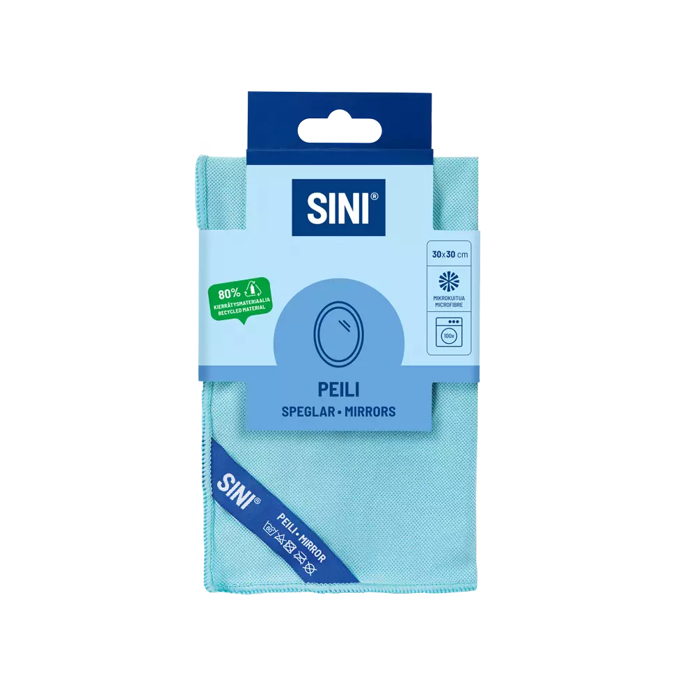 Mikrokuituinen peililiina poistaa tahrat ja kiillottaa peilit säihkyvän kirkkaaksi. Nihkeänä irrottaa lian pelkällä vedellä. Ei nukkaa eikä jätä raitoja. Liinassa on kätevä ripustuslenkki, jossa lukee käyttökohteen nimi ja liinan saa ilmavasti kuivumaan. Liina kestää kymmeniä pesukertoja pesukoneessa 60 asteessa.