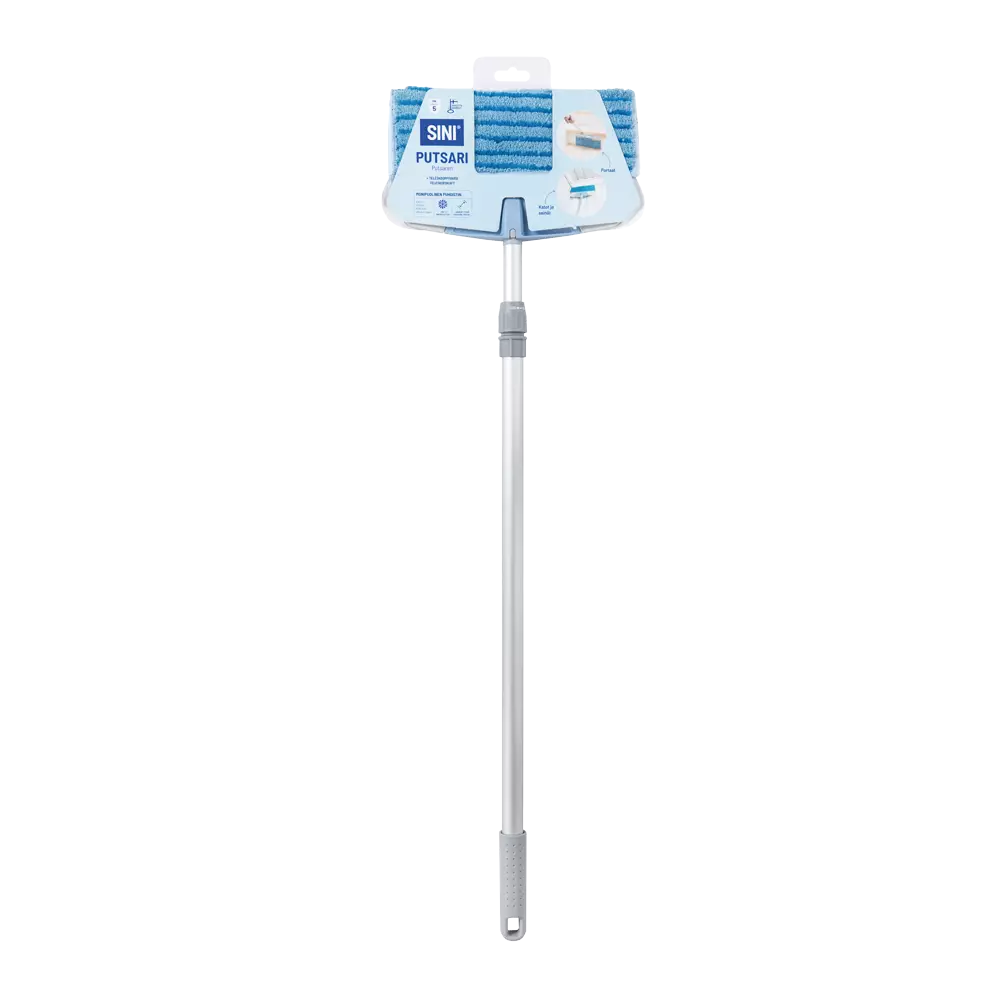 SINI-Putsari on kevyt ja näppärä moppi nopeaan siivoukseen. Mopin taipuisa lapa mukautuu puhdistettavan pinnan mukaan. Putsarissa on tarroilla kiinnittyvä mikrokuitupäällinen, jota voi käyttää kuivana pölynpyyhintään tai kosteana tahroille. Putsarinin avulla on helppo puhdistaa kaikki tasaiset pinnat, jalkalistat, katot ja lattiatkin. Kevyt ja helppo käsitellä. Pakkaus sisältää teleskooppivarren, taipuisan lapaosan ja mikrokuitupäällisen, jota myydään myös erikseen. Putsariin voit kiinnittää myös kertakäyttöisen siivousliinan kiinnittämällä liinan painonappeihin. Säädettävään teleskooppivarteen sopivat kaikki SINI-kiinnityksellä varustetut siivousvälineet.