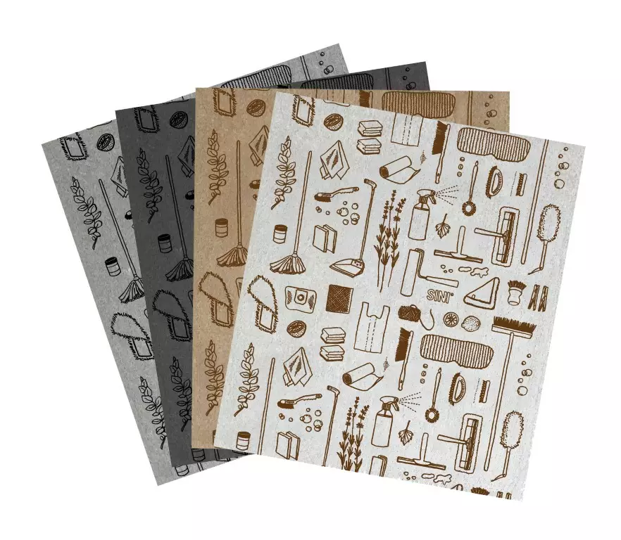 Imukykyinen ja kestävä sieniliina imee jopa 15 kertaa oman painonsa verran vettä. Sieniliinalla saat taatusti kauniin lopputuloksen, sillä se ei nukkaa eikä jätä pisarajälkiä. Hauskasti kuvioidulla liinalla on ilo siivota.- Selluloosasta ja puuvillasta valmistetun sieniliinan voi hävittää kompostoimalla tai biojätteen mukana.- Skandinaaviseen sisustukseen sopivat, harmoniset värit.- Saanan ja Ollin tyylikäs design-kuosi.- Pakkauksessa on kahdeksan liinaa, 2 kappaletta kutakin väriä.