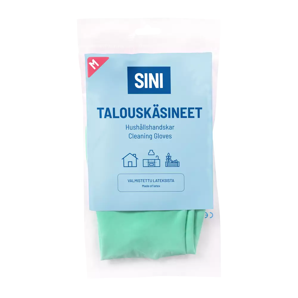 Talouskäsineet on valmistettu luonnonkumista ja niiden sisäpinnalla on nukattua puuvillaa. Käsineet ovat kestävät ja joustavat, mutta samalla ne ovat kuitenkin riittävän ohuet, jotta sormituntuma säilyy. Talouskäsineet kestävät hyvin erilaisia pesuaineita ja ne sopivat kodin, keittiön ja puutarhatyöskentelyn yleiskäsineiksi. Käyvät hyvin tiskihanskoiksi ja suojaavat kuumalta vedeltä. Hansikkaat ovat oiva apu myös kalanperkuussa, ja paksu kumi suojaa esimerkiksi teräviltä kiduksilta.