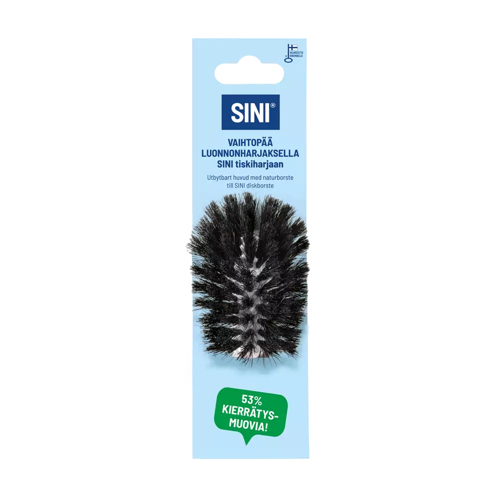 Astianpesuharjan vaihtopää sopii kaikkiin SINI-tiskiharjoihin, joissa on vaihdettava harjasosa. Tiskiharjan vaihtopäässä on hellävaraiset hevosenjouhesta valmistetut luonnonharjakset.