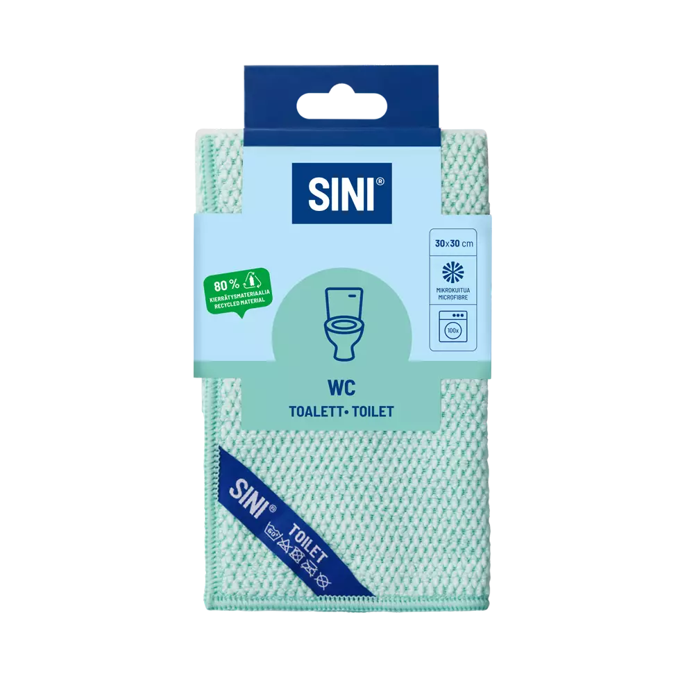 Puhdista WC-pönttö ja muut WC:n pinnat hygieenisesti mikrokuituliinalla, joka irrottaa lian tehokkaasti sen pintarakenteen ansiosta. Vaikeatkin tahrat puhdistuvat jopa pelkän veden avulla. Kuivana liina on erinomainen pölyn vangitsija. Ripusta liina kuivumaan ilmavasti kätevän ripustuslenkin avulla. Liinat on nimetty käyttökohteiden mukaan – siksi ne on helppo tunnistaa. Kestää kymmeniä pesukertoja pesukoneessa (60 ?C). Käytä aina pesupussia. SINI mikrokuituliinojen valmistuksessa on käytetty kierrätettyjä PET-pulloja (n. 80 % materiaalista). Käytä yhdessä SINI WC-puhdistusaineen kanssa.