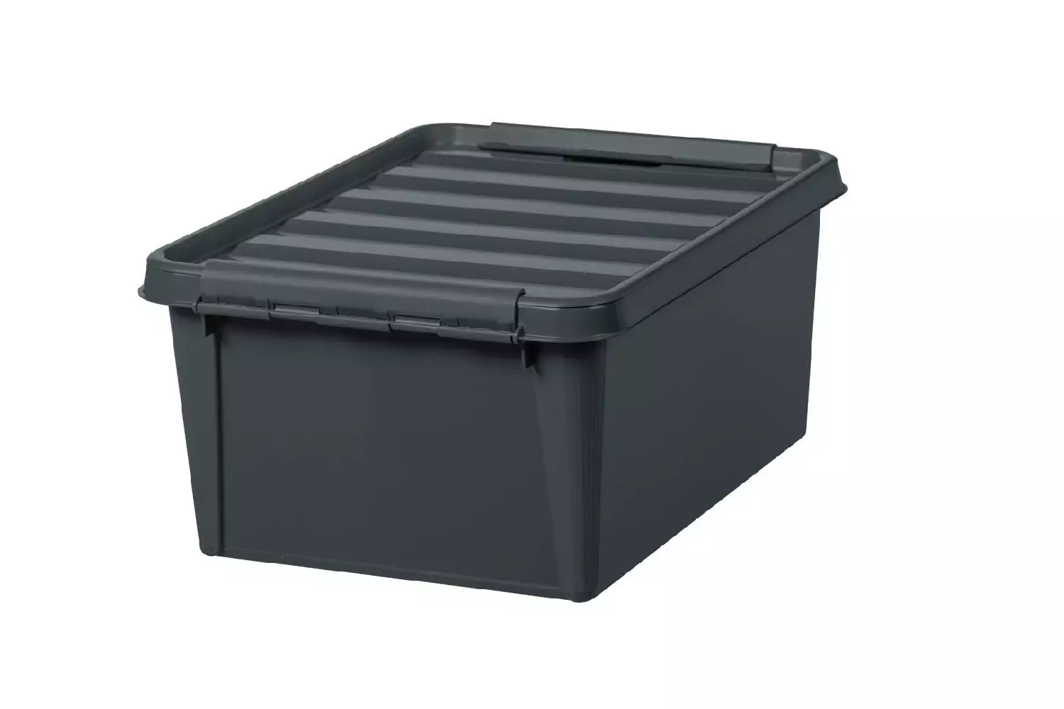 SmartStore™ Recycled -sarjaan kuuluu suosittuja säilytyslaatikoita kierrätysmuovista valmistettuina. Sarjan säilytyslaatikot ovat ihanteellisia pitkäaikaiseen säilytykseen esimerkiksi varastossa, kellarissa tai autotallissa. Tämä 14 litran säilytyslaatikko sopii muun muassa pienempien työkalujen, johtojen, varaosien, kalastusvälineiden ja kirjojen säilytykseen. Laatikko on mitoitettu A4-kokoisille papereille, joten se on optimaalinen myös aikakauslehtien säilytykseen. Tukevat sulkijat pitävät kannen tiukasti kiinni. Laatikot pinoutuvat kansien kanssa päällekkäin ja ilman kansia ne voidaan säilyttää sisäkkäin. Tehty Ruotsissa kestävästä kierrätetystä muovista. 10 vuoden takuu.