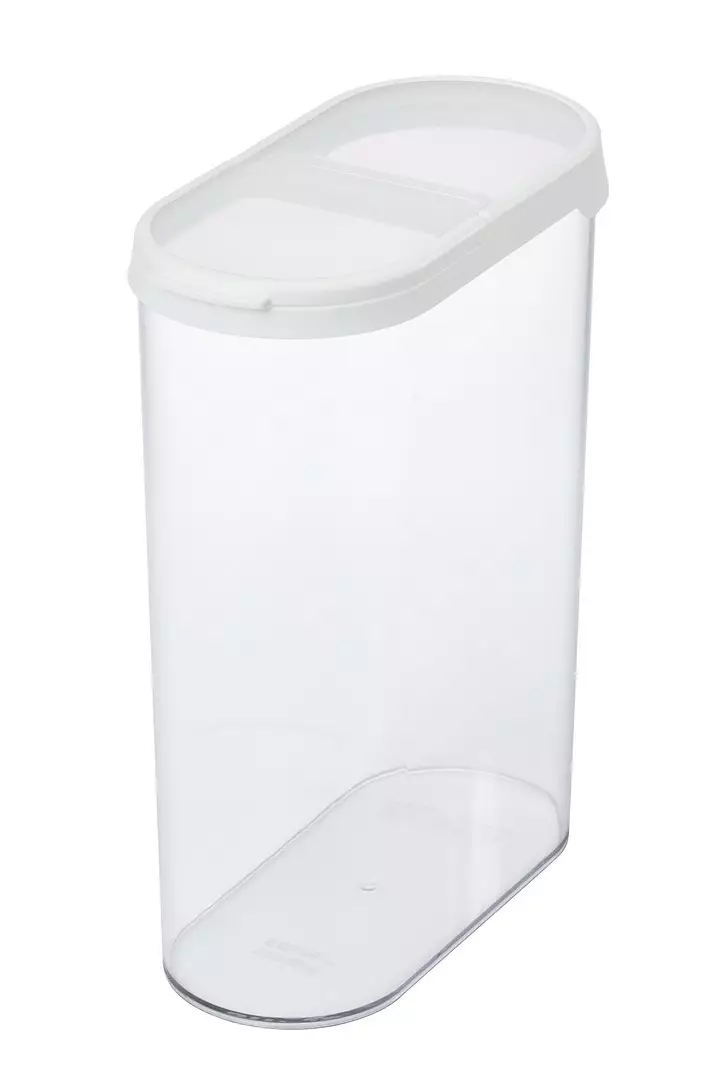 SmartStore Flip on rasiasarja kuivien ruoka-aineiden säilytykseen. Ruoka-aineita on helppo kaataa suoraan purkista. Purkkeja voi pinota päällekkäin säilytystilan säästämiseksi. Sisällön näkee helposti purkin läpi, kaapissa sivulta ja keittiön vetolaatikossa päältä päin. Purkkikoko 2,4 L sopii hyvin jauhojen, pastan tai myslin säilytykseen. Valmistettu Suomessa. Voi pestä astianpesukoneessa.