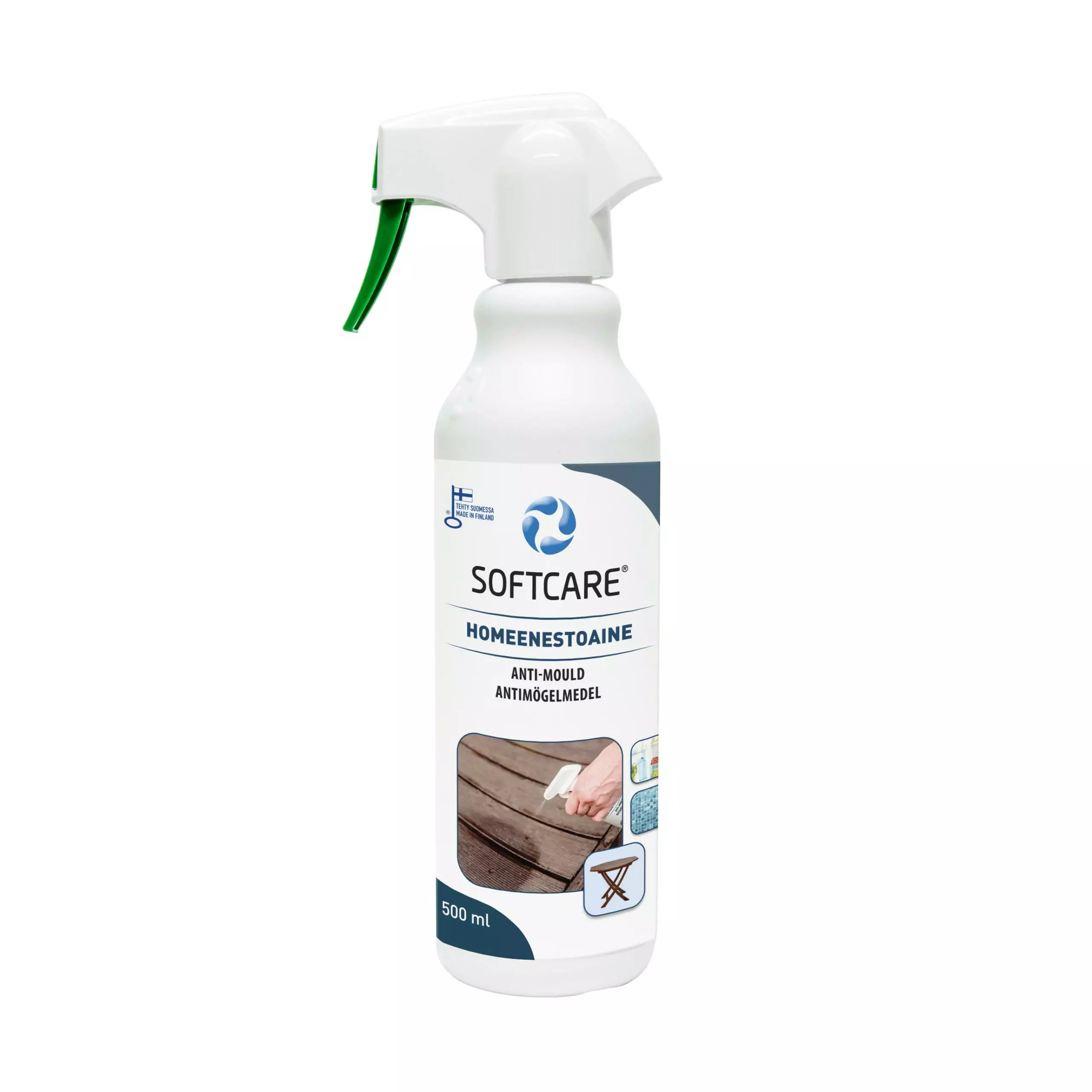 Softcare Homeenestoaine 500 ml estää tehokkaasti homeiden kasvua puu- ja tekstiilipinnoilla. Suojaus ei vaikuta materiaalin ulkonäköön eikä ominaisuuksiin. Vältä aineen joutumista silmiin. Huuhtele roiskeet silmistä runsaalla vedellä. Vältä aineen joutumista hengitysteihin sumutettaessa. Tuote on biosidi. Käytä biosideja turvallisesti. Lue aina etiketti ja valmistetiedot ennen käyttöä.