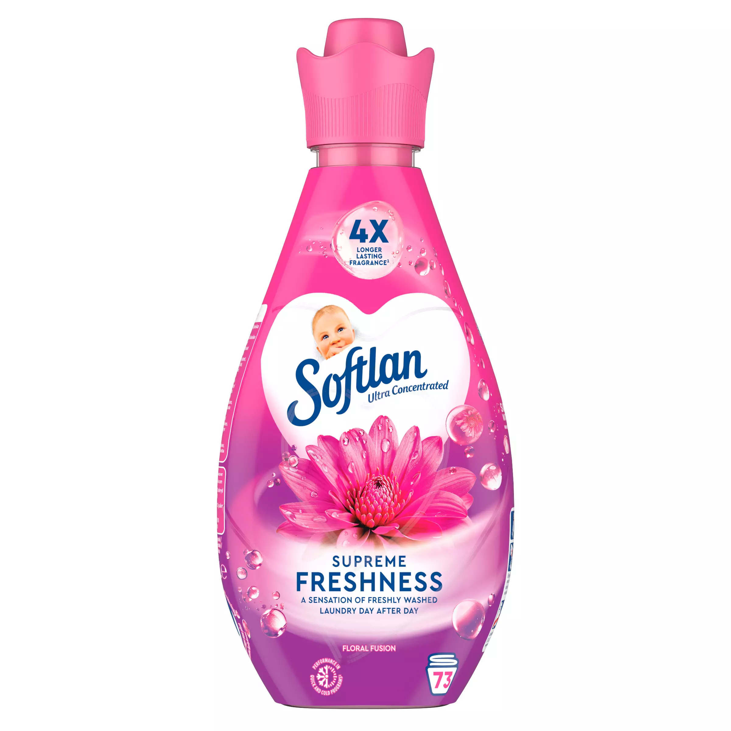 Uusi Softlan Supreme Freshness Floral Fusion -huuhteluainetiiviste pitää vaatteesi ihastuttavan tuoksuisina päivästä päivään. Huuhteluaine pehmentää vaatteita ja suojaa nukkaantumiselta sekä värin haalistumiselta* – myös kylmällä vedellä pestäessä. Dermatologisesti testattu ja pakattu 100% kierrätettyyn ja kierrätettävään pulloon.